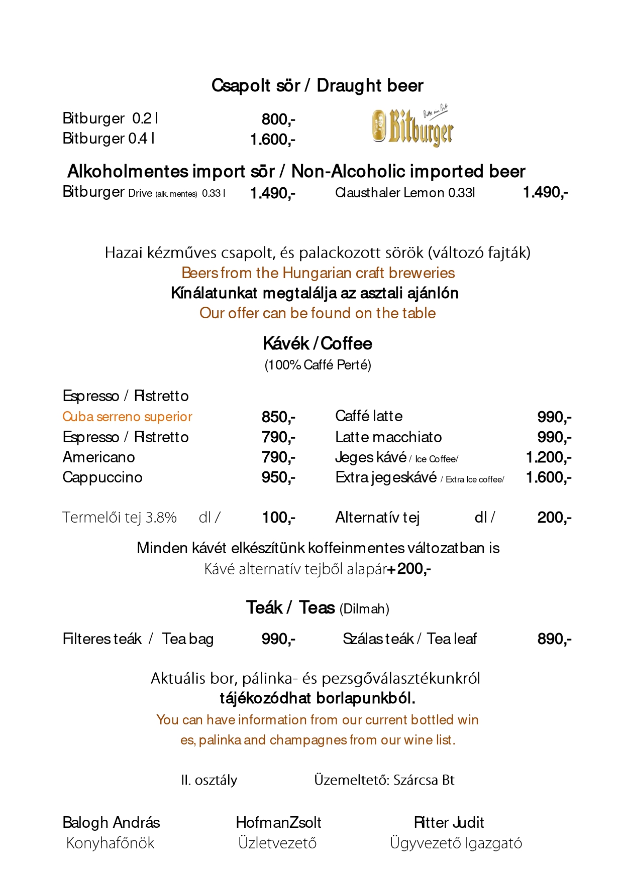 Konyhafőnök ajánlata